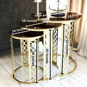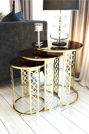 Bronze Mirror Gold Plated Zigon Coffee Table 3-Piece Set: