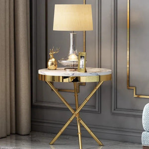 Golden Finish Sofa Side / Coffee Table | MST-0156