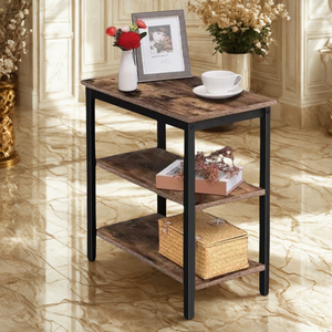 Sofa Side Table, Simple Rustic Side Table with 3-Tier Storage Shelf | MST-0339