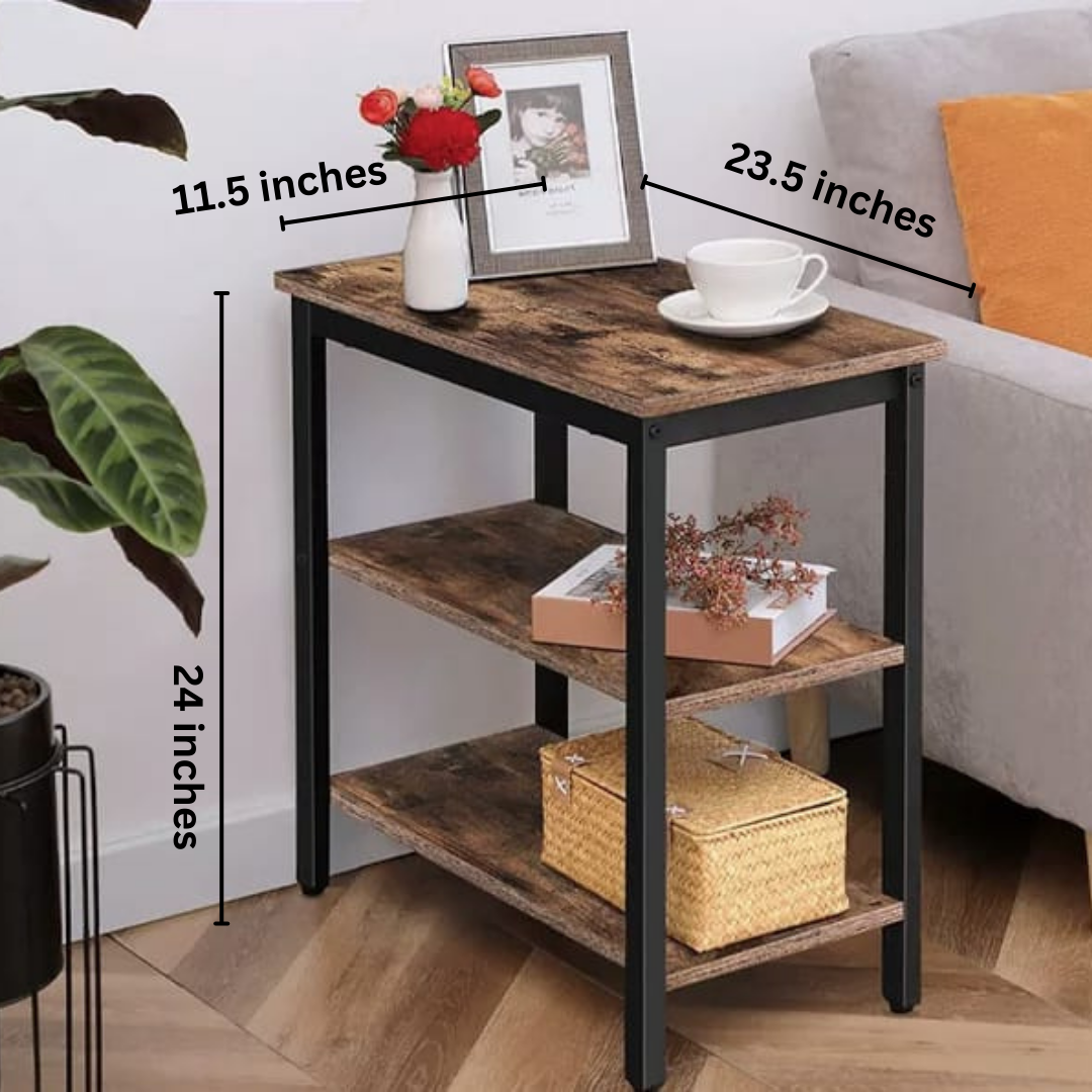 - More Than an End Table: Its size is 23.5’ x 11.5’’ x 24’’ (L x W x H), It can be a bedside table also, or you’d like to use it as a little 3-layer storage rack. Anywhere or everywhere needs a storage shelf, it can do the job!