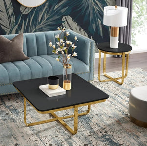Latrice Black/Gold Coffee Table High Gloss Lacquer Finish Top | MST-0372