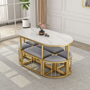 Elevate your dining room with the Modern White Oval Dining Table with Stools. Its sleek design, durable construction, and luxurious finish make it perfect for any occasion. Enjoy upscale dinners or casual morning meals with style and comfort.