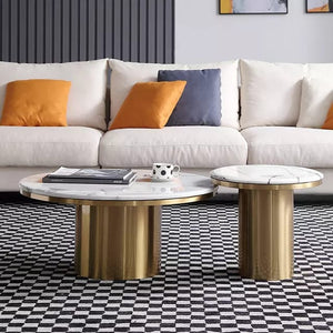 Upgrade your living room with our elegant Nordic Round Granite Coffee Tables. Featuring gold metal iron coffee table legs, these tables effortlessly blend modern style with durability.