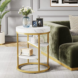 Round End Table, Small Side Table Nightstand with 3-Tier Shelves | SST-5028