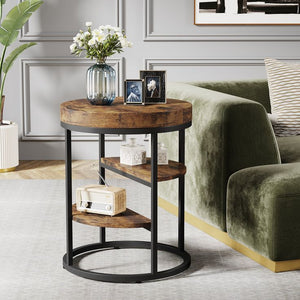 Round End Table, Small Side Table Nightstand with 3-Tier Shelves | MST-0267