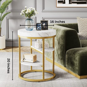 1.50" Thick Mdf Tabletop & Easy Carefully - and sturdy metal support. The white gold end table offers a super strong load-bearing capacity, perfect for displaying books, decorative items, and personal belongings. Easy to care for and without worrying about maintenance, just wipe with a damp or dry cloth when dirty. Stylish Appearance - Elevate your home decor with this elegant side end table. With a sleek white and gold color scheme.