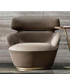 Polished Golden Finish: The metal circular base features a polished golden finish, adding a touch of glamour and refinement to the armchair's design. The juxtaposition of the warm taupe upholstery against the lustrous gold creates a striking aesthetic that elevates any space.