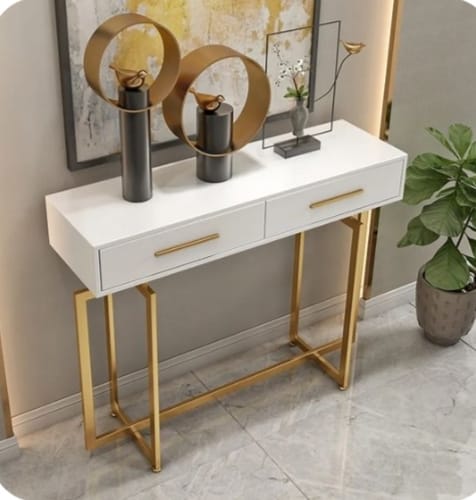 With its sleek black and golden finish, this console table exudes sophistication while adding a touch of warmth to your living room, hallway, office, or hotel. The spacious drawer provides convenient storage for keys, mail, or other essentials, keeping your space organized and clutter-free.