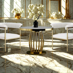- Design: Refined and striking, featuring a perfectly rounded table perched upon a bold cylindrical base.